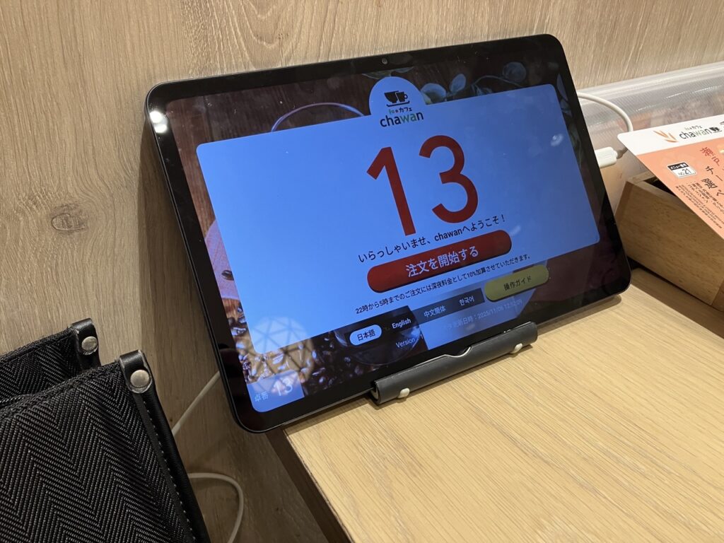 chawanの注文システムは「タブレット, 席で店員を呼んで注文(レジであと払い)」です。