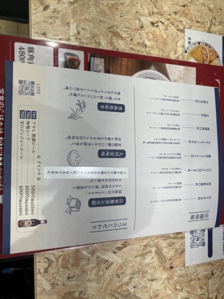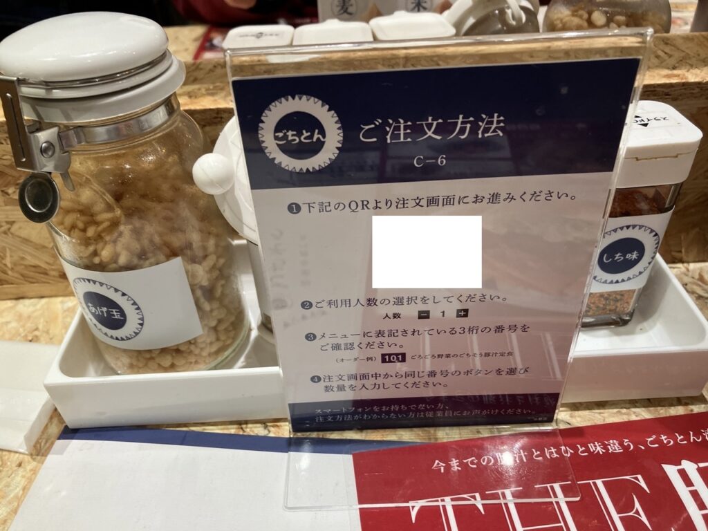 まず店に入ったら店員から席を指定され、席でQRコード読み取りで注文(LINE登録なし)。