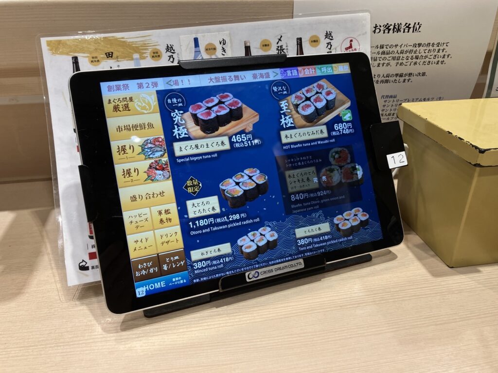 タブレットからの注文が注文確認画面がなく、シャリとわさびを選ぶと即注文になるので注意。