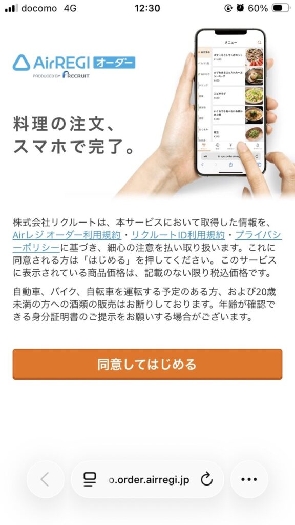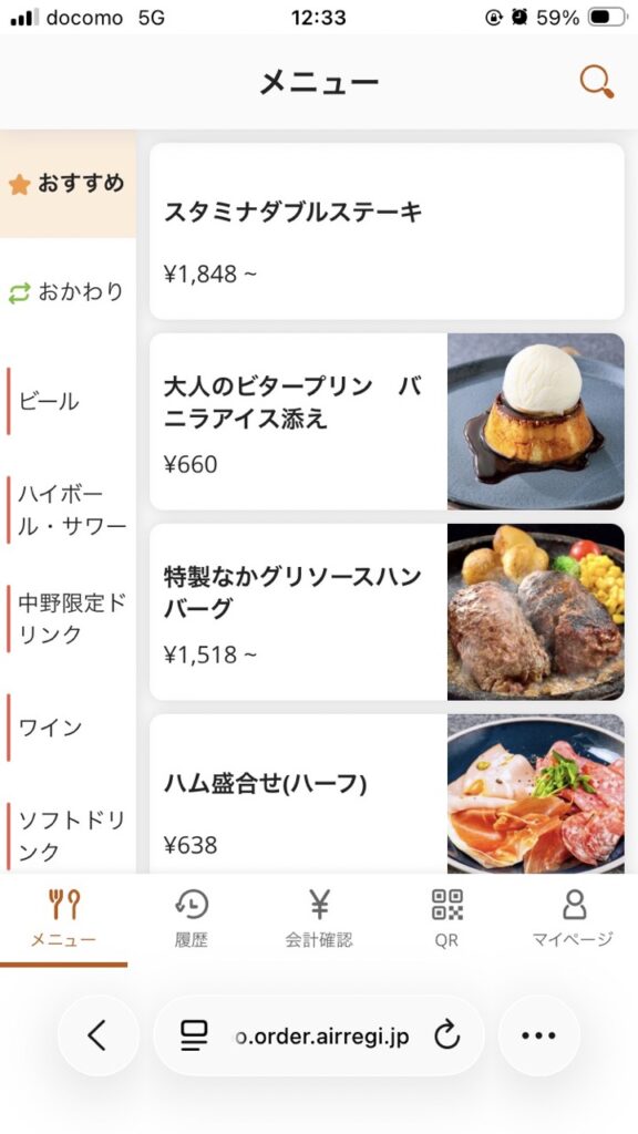 なかのグリルの注文システムは「モバイルオーダー」です。