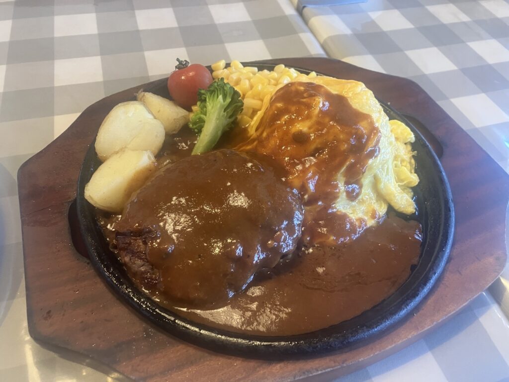 - ハンバーグとオムライスのやつ。オムライスが味ついてて美味しい。