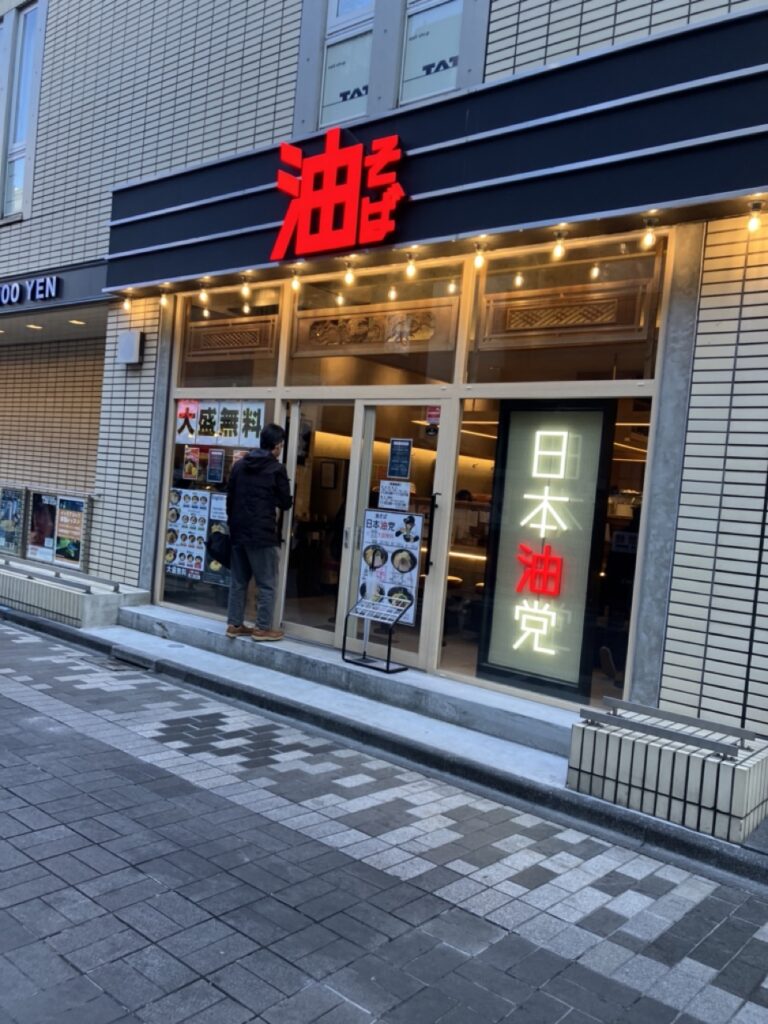 油そばの専門店。「油」と大きく書かれてるのが特徴。大盛り無料(300g)。券売機で購入。日本油党の基本情報をまとめました。