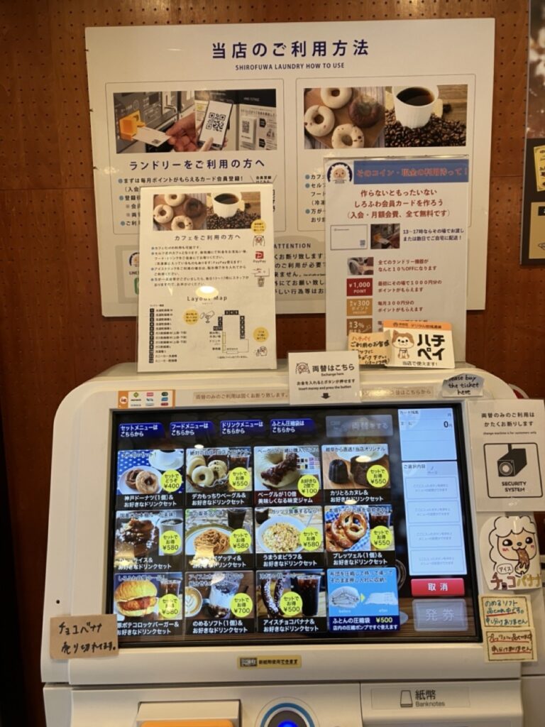 コインランドリー&カフェ「しろふわランドリー」の注文システムは「券売機」です。
