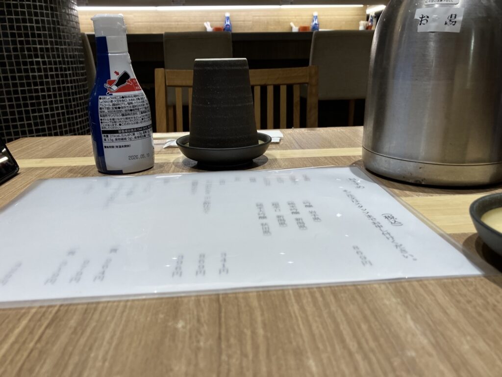 水がなく、お湯と茶葉の粉が置いてある。汁物とセットで熱い系ばかりになるので水を頼む必要があるかも。