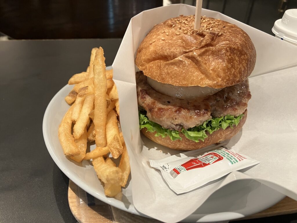 - ハンバーガー。肉汁がすごい。ドリンクとセットで2000円くらい。