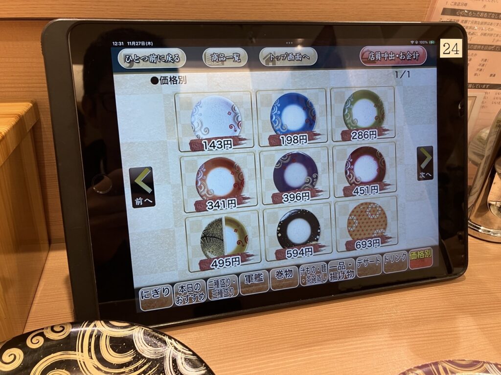 注文はわかりやすい。ただ一度に同じものが4つまでの制限はちょっと面倒。あとはたまに始まるセリのようなイベント(限定商品が紹介され、早く手を挙げると購入できる)はわりと初見ころしかもしれない。会計前に店員を呼んで皿の数を数えてからレジへ行くが、割り勘も対応できてよい。
